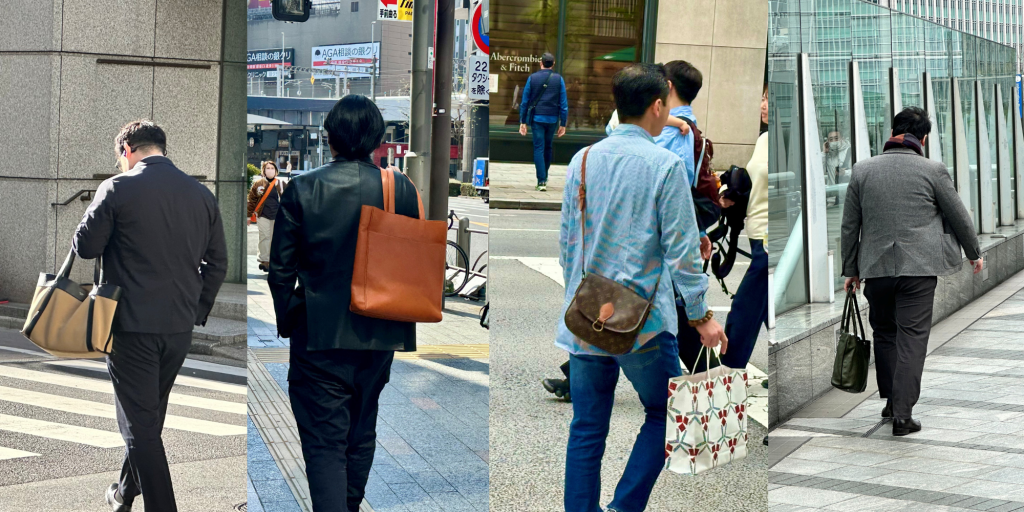 During my first few weeks in Tokyo, it threw my gender stereotypes upside down. Japanese men carrying handbags: crossbody bags, clutches, shopping bags, messenger bags – you name it.